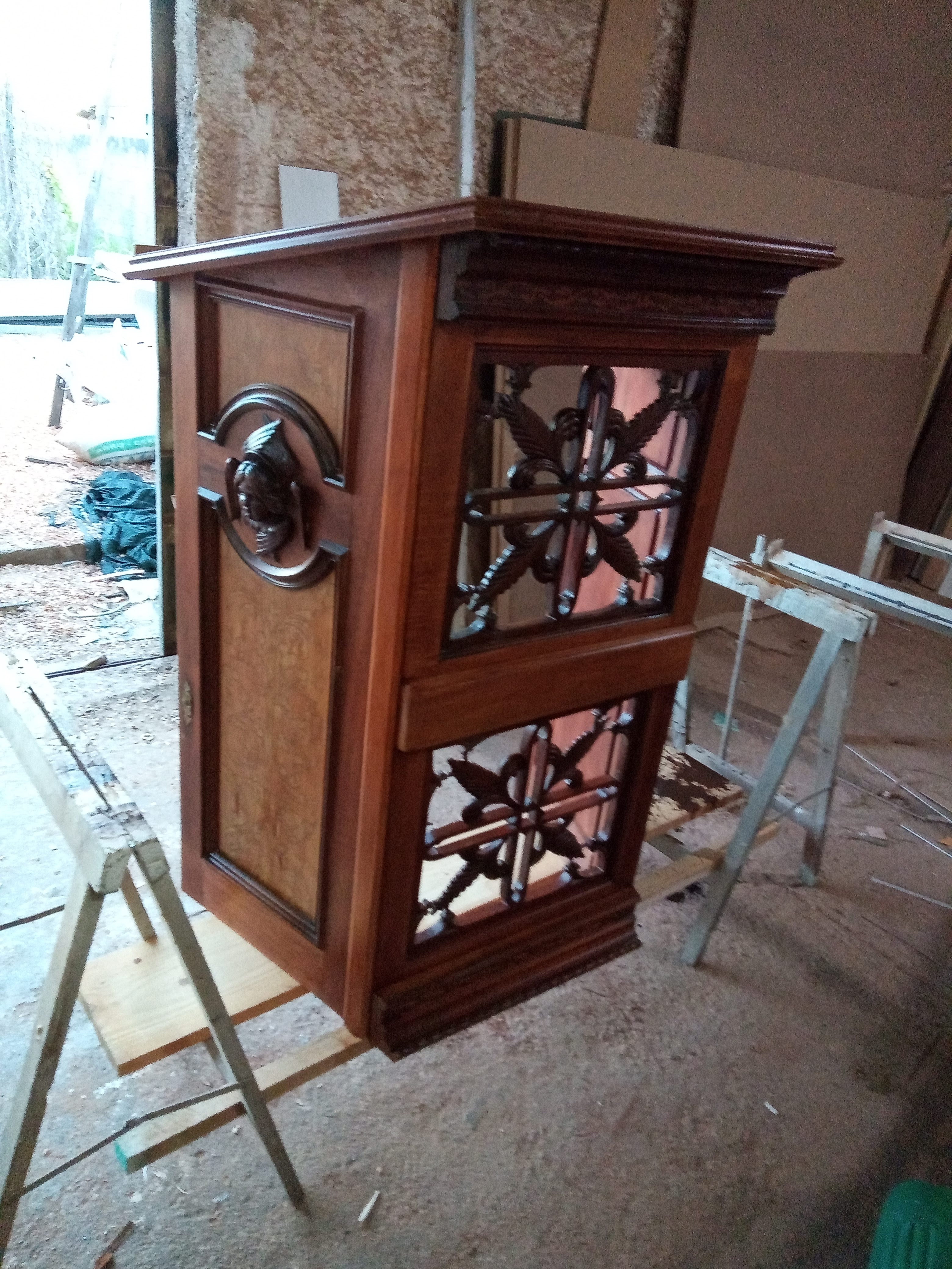 Nuestro servicio de restauración abarca una amplia gama de trabajos. En muebles antiguos y de valor patrimonial, realizamos intervenciones respetuosas que conservan el carácter original de la pieza: reencolado de juntas debilitadas, reemplazo de piezas faltantes replicando fielmente el diseño original, recuperación de tallados y molduras, y aplicación de acabados que respetan la pátina natural del tiempo.